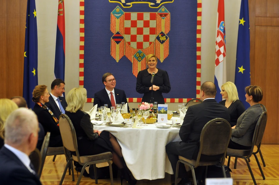 Grabar-Kitarović je sinoć priredila svečanu večeru za Vučića i delegaciju i iskoristila priliku da još jednom istakne značaj posete šefa srpske države.