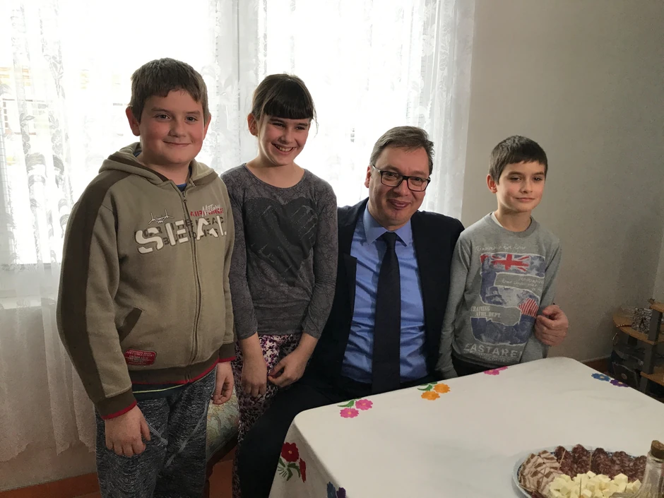 Srpski predsednik je u Vrginmostu ranije danas posetio porodicu Lapčević, Predraga i Draganu, i njihovo troje dece, Aleksandra, Vesnu i Zorana. Vučić im je doneo prigodne poklone, dok je za školu "Gvozd" obezbeđeno deset računara i knjige. Inače, većina od 94 dece koja pohađaju školu u ovom mestu su srpske nacionalnosti.