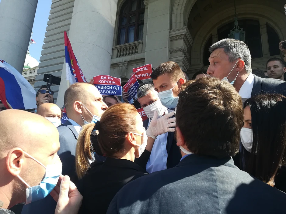 Kako je saopštio pokret, oni "nemaju veze sa pocepanim sakoom poslanika vladajuće koalicije Marijana Rističevića", niti su u tome učestvovali, prenosi Tanjug.