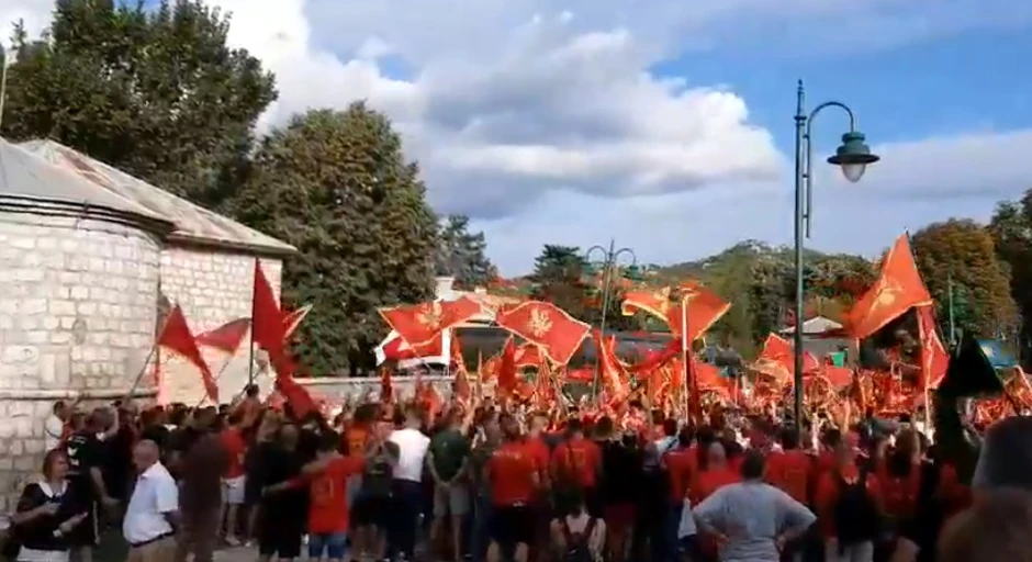 U 17 časova su se oglasila zvona sa manastira što je pozdravljeno aplauzom i povicima "E viva, Montenegro", ali i iz poneku psovku.