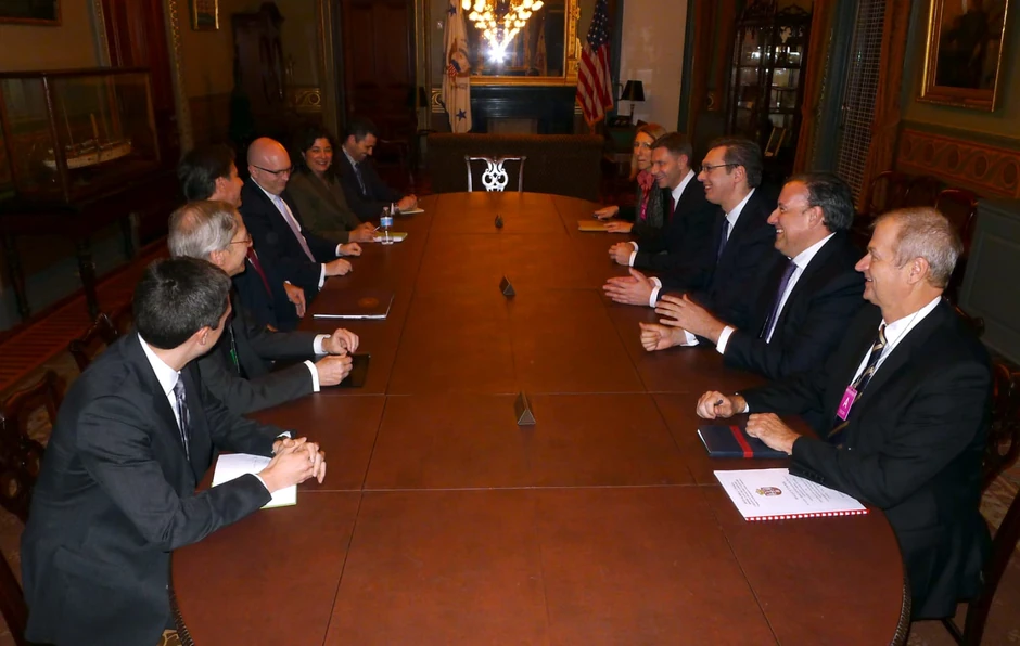 Sa aktuelnim predsednikom Srbije on se susretao nekoliko puta, kada je još bio na funkciji premijera Srbije. Blinken je u to vreme bio zamenik državnog sekretara SAD.