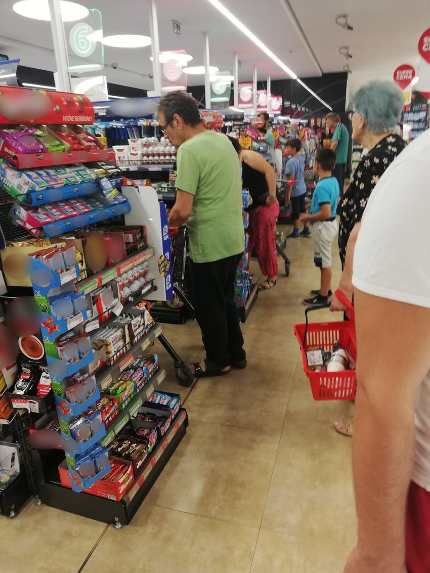 On je, naime, snimljen u prodavnici, kako nakon kupovine namirnica u jednom od hipermarketa u Aranđelovcu, čeka u redu za plaćanje na kasi.