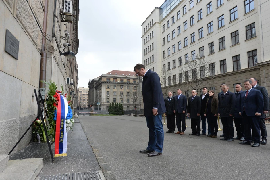 Premijer Aleksandar Vučić i članovi Vlade Srbije položili su danas venac na spomen-ploču Zoranu Đinđiću u dvorištu Vlade.