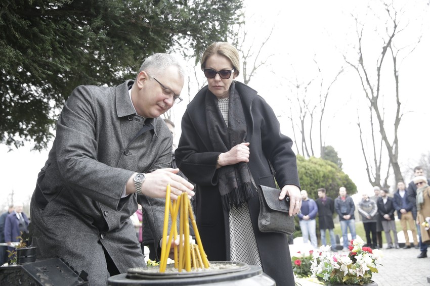 Grobu ubijenog premijera prvi je prišao Čedomir Jovanović i njegova supruga. Za njim sveću je upalila i Nataša Mićić.