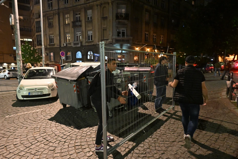 Studeni u veseloj atmosferi pakuju stavri koje su bile postavljene ispred zgrade RTS-a u takovskoj ulici.