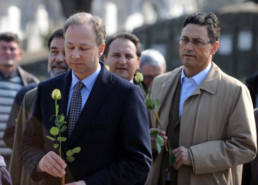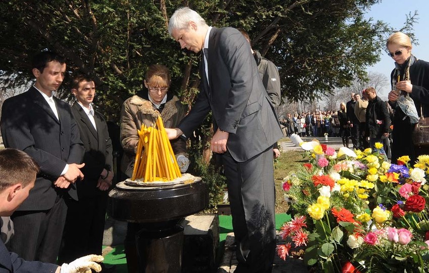 Vence na Đinđićev grob položili su članovi DS - ministri Vuk Jeremić i Slobodan Milosavljević, kao i predsednik Vlade Vojvodine Bojan Pajtić.