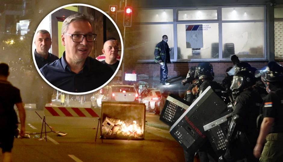 Demonstranti su u prostorije SNS ubacili pirotehnička sredstva, nakon čega se pojavila Žandarmerija. Tada je nastao potpuni metež u centru grada.