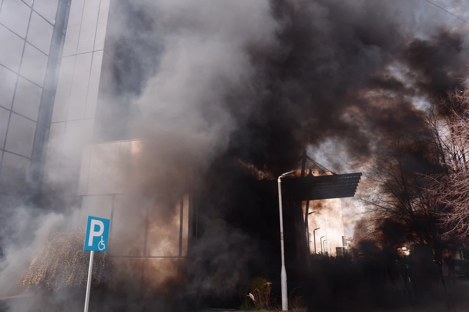 Zatim su aktivirali više dimnih bombi, čime je kraće vreme deo i ulaz u zgradu vlade bio obavijen gustim crnim dimom.