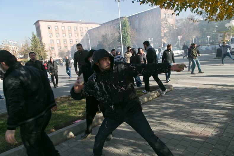 Ministar policije Baki Keljani je rekao da su demonstrantni koristili suzavac i molotovljeve koktele, te da je jedan policijski automobil uništen.