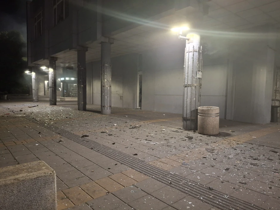Polupani su prozori, a komadi stakla okružuju prilaz zgradi. Žandarmerija rasteruje građane, a vatrogasci ulaze u prostorije Gradske uprave.