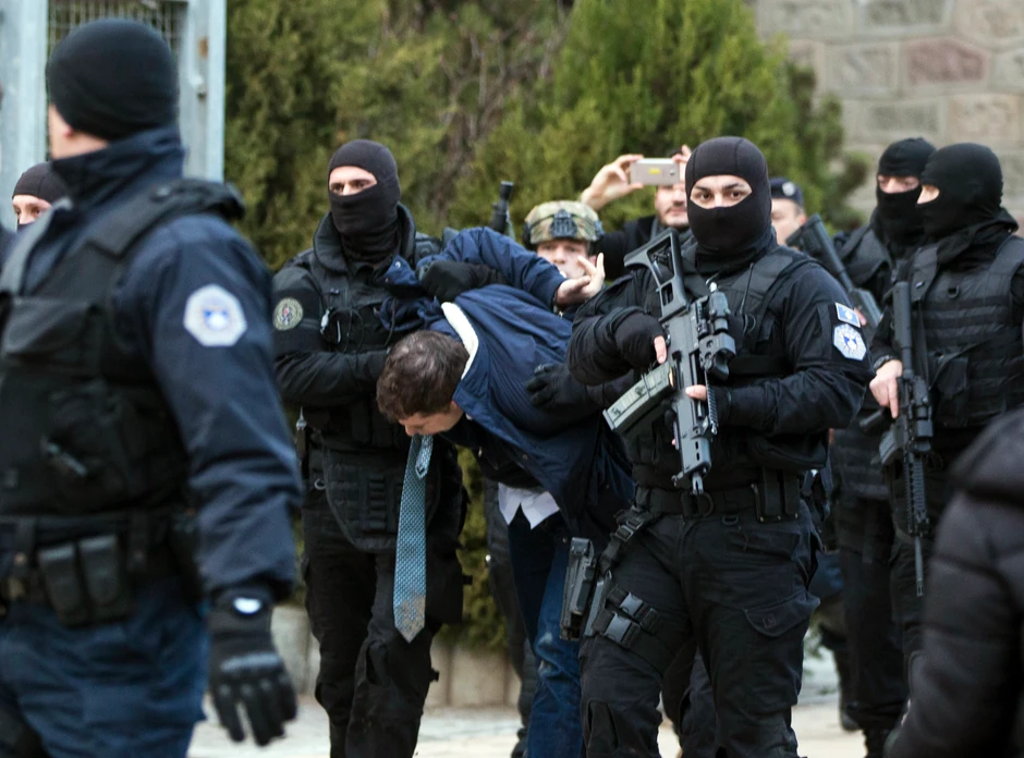 Đurić je u Prištinu sproveden sa lisicama na rukama, a dvojica specijalaca su ga držali u povijenom položaju i u brzom hodu su ga prebacili iz automobila u zgradu policije.