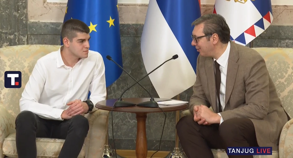 Predsednik Srbije Aleksandar Vučić sastao se sa mladićem Nikolom Nedeljkovićem (20) iz Beograda, koji je pre dva dana pušten iz zatvora u Prištini, gde je proveo šest meseci.