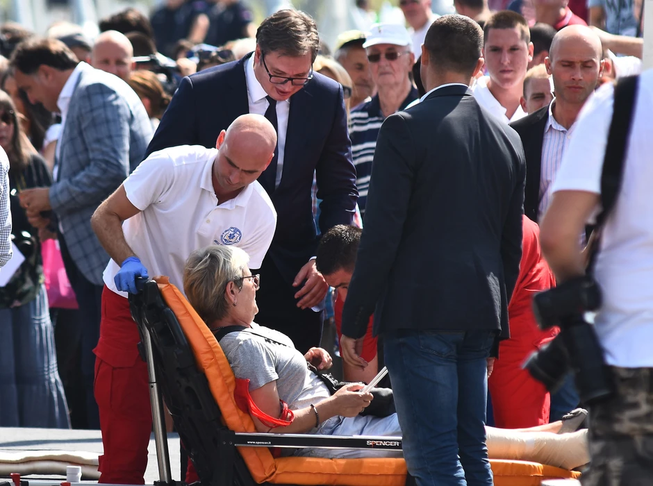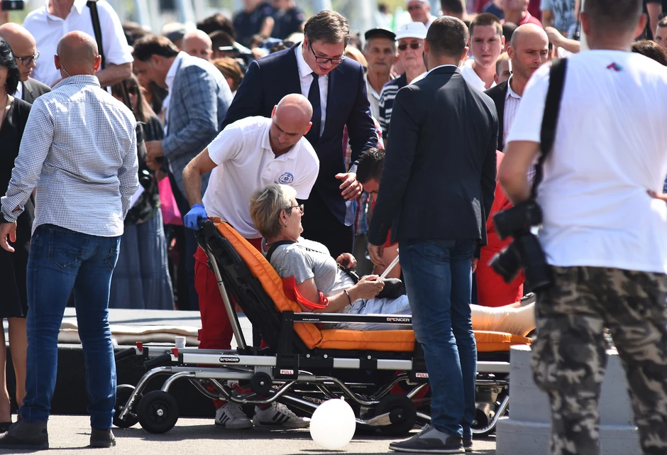Jedna starija gospođa je tokom trajanja ceremonije otvaranja Žeželjevog mosta u Novom Sadu pala je i slomila nogu.
