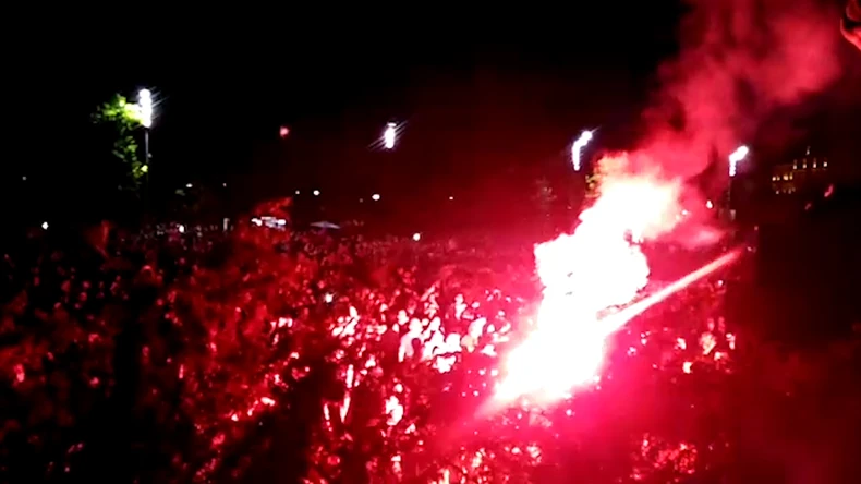 Nakon sukoba ekstremista, huligani su probili zaštitnu ogradu i popeli se na skupštinsko stepenište, a zatim i upali u zgradu Narodne Skupštine. Zapalili su i baklje i bacali kamenice na policiju.