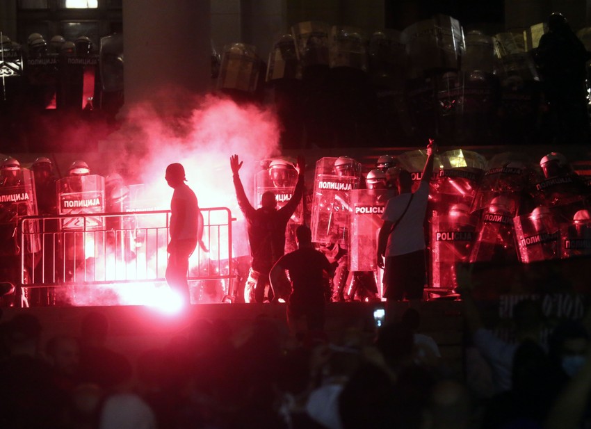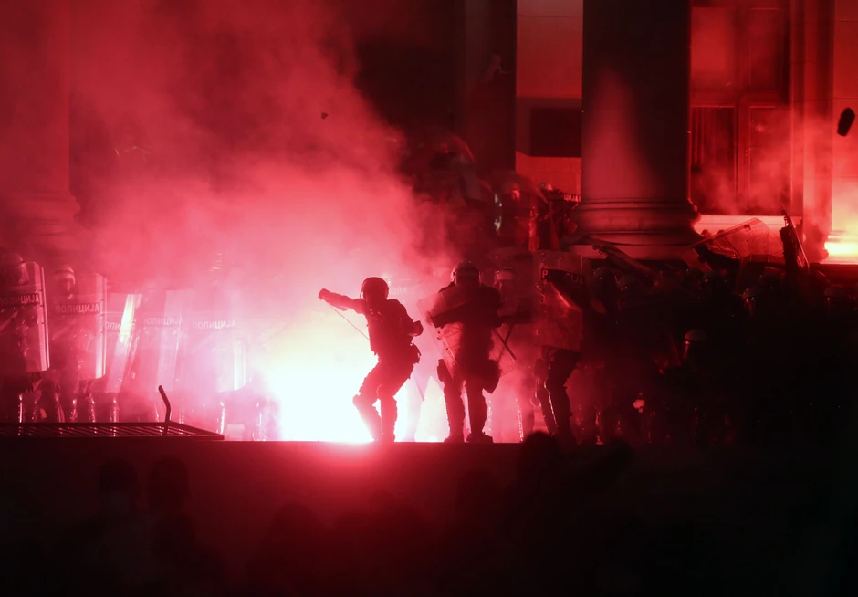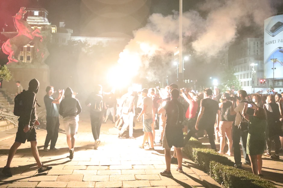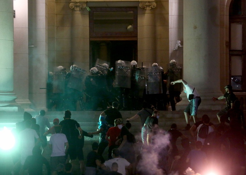 Nastao je pravi stampedo, demonstranti beže prema Trgu Nikole Pašića. Gore baklje ispred Skupštine. Ne zna se ima li povređenih i koliko, ali ka mestu gde su se dogodili nemiri juri vozilo Hitne pomoći.