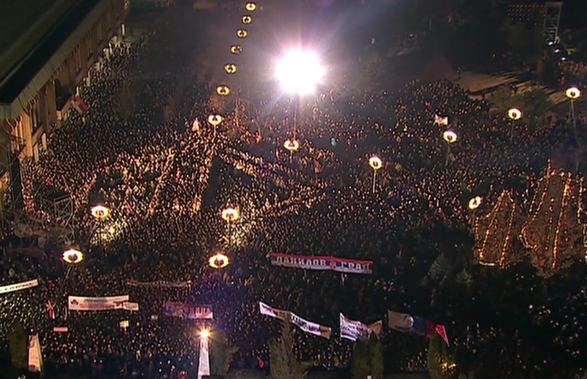 Iako se očekivalo da će se obratiti okupljenima, Putin je samo rekao: Hvala na prijateljstvu na srpskom i "spasiba".