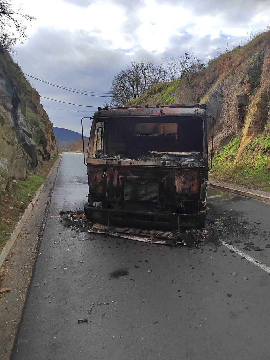 Izgorele su kabine oba kamiona na barikadi u Kosovskoj Mitrovici, nedaleko od mesta Dudin krš, na mostu preko kojeg se se iz grada ide prema magistralnom putu prema Prištini.