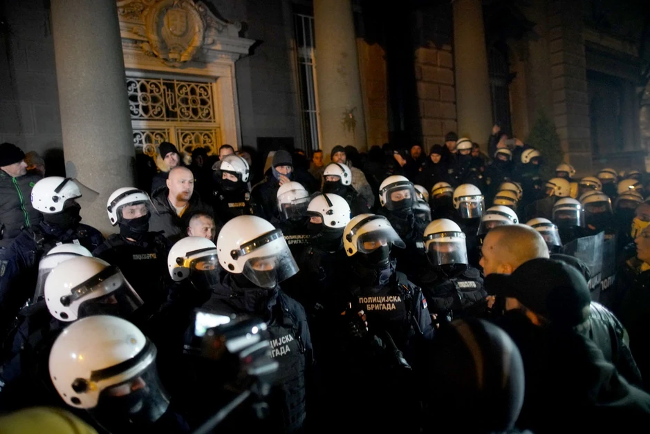 Okupljeni su uzvikivali parole protiv državnog rukovodstva, a poletela su i jaja ka zdradi Predsedništva, javlja reporter Euronews Srbija. Zatim su krenuli ka zgradi policijske stanice u ulici Majke Jevrosime. I tamo ih su ih dočekale policijske snage.
