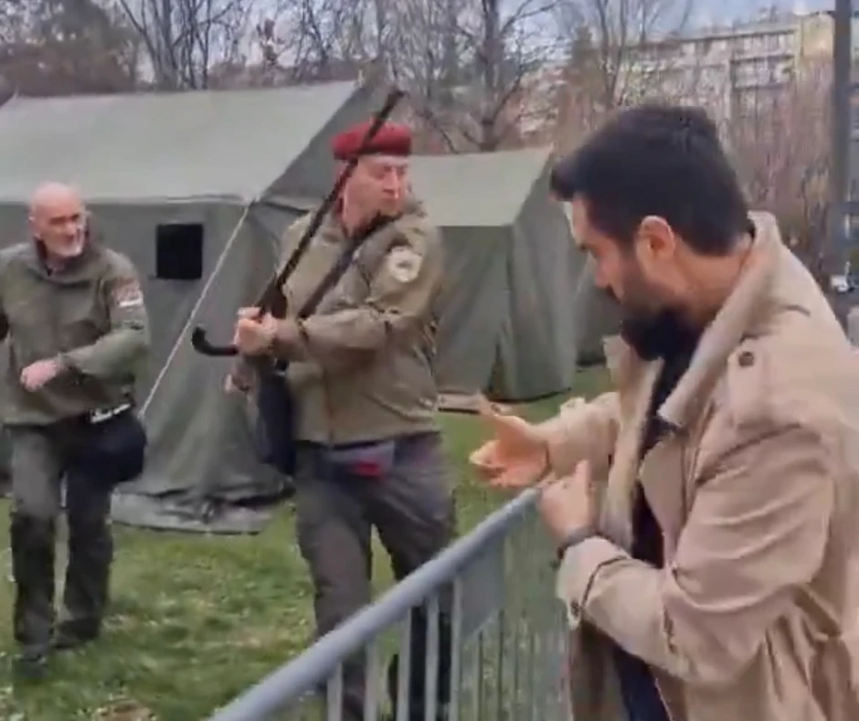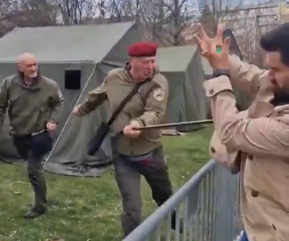 Veterani JSO došli su da podrže studente koji protestuju u Pionirskom parku pa su razvili i svoje šatore. Međutim, ubrzo su ušli u raspravu sa prolaznicima.