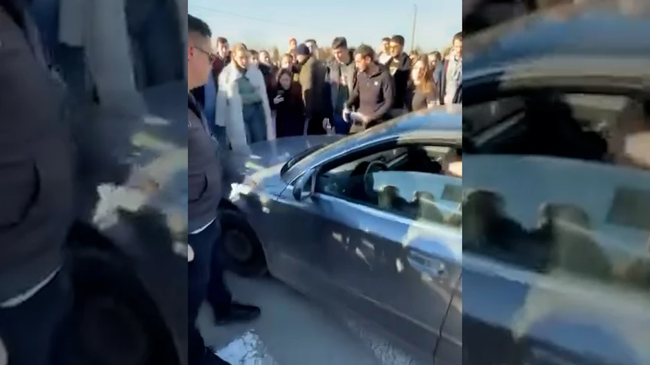 Na snimku se vidi kako jedna ženska osoba pada nakon udarca vozila koje se ne zaustavlja ni uprkos tome, kao i okupljeni koji rukama zadržavaju vozilo da se ne kreće dalje i povlače ženu.