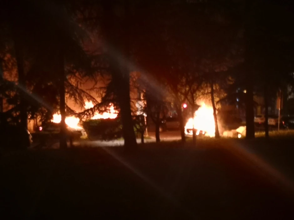 Dva policijska automobila i "marica" zapaljeni su večeras tokom protesta ispred Crkve Svetog Marka.