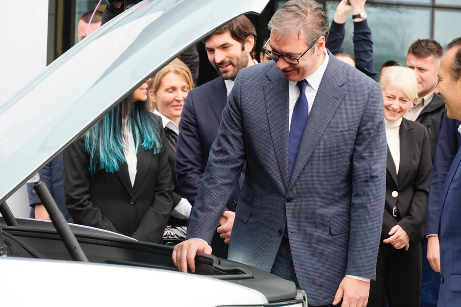 Predsednik Srbije Aleksandar Vučić prisustvovao je danas svečanom otvaranju tehnološkog centra američkog proizvođača električnih vozila "Rivijan".