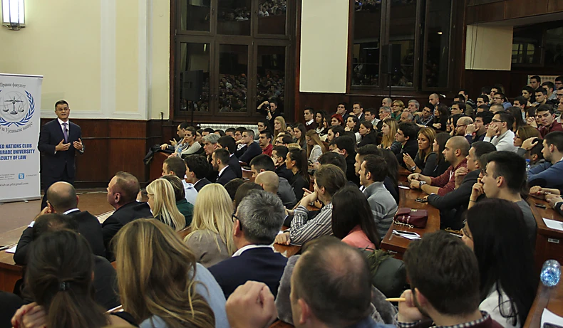 Na poziv Studentskog parlamenta ovog fakukteta, Jeremić je govorio o aktuelnim događajima na međunarodnoj sceni, ali i o kandidaturi za generalnog seketara UN.