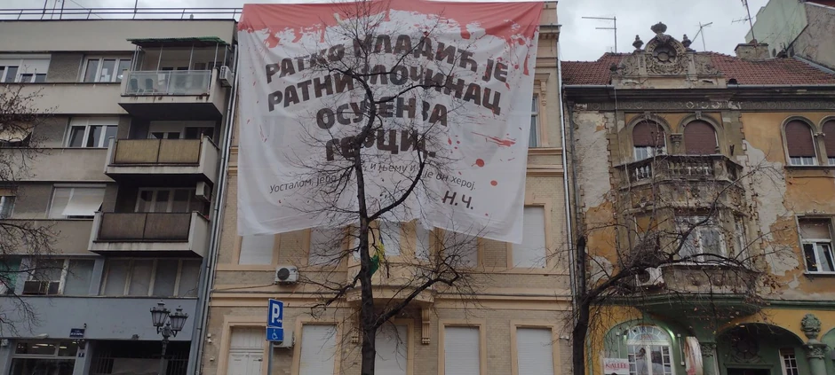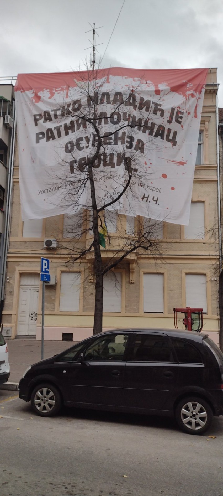 Na zgradi u centru Novog Sada, u kojoj se nalaze prostorije Lige socijaldemokrata Vojvodine (LSV), jutros je osvanuo ogroman pano na kome piše "Ratko Mladić je ratni zločinac osuđen za genocid".
