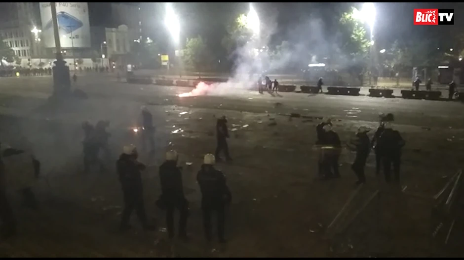 U toku je jedan od najbrutalnijih napada, gde je nekolicina demonstrana gađala kamenjem i bakljama Skupštinu. Naše kamere zabeležile su krš koji se nalazi upravo ispred Savezne Skupšine: