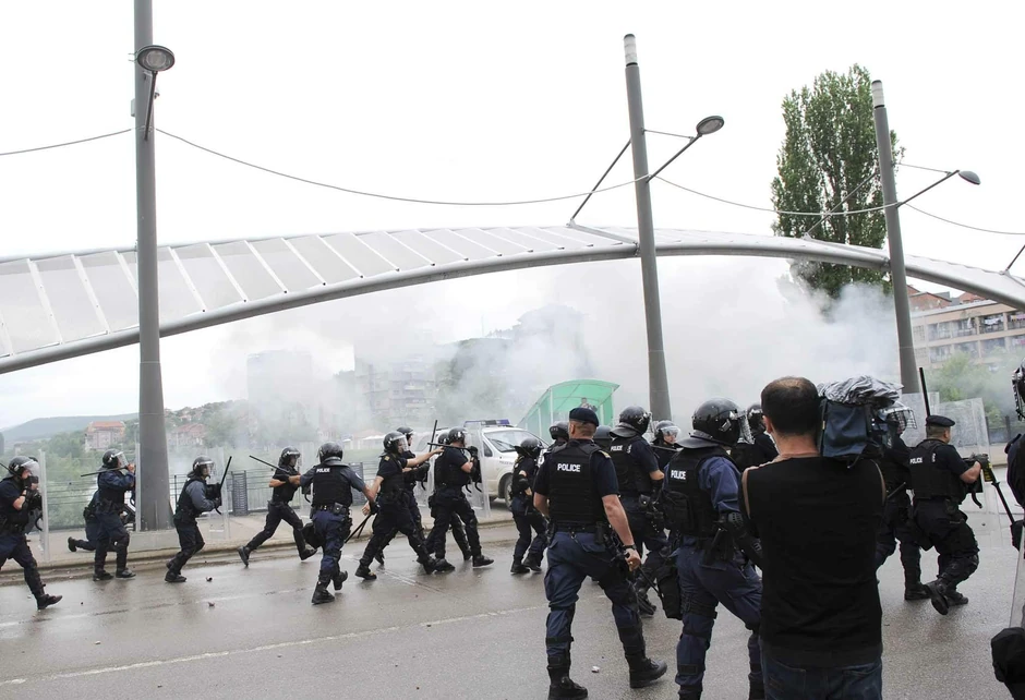 Do „bliskog kontakta“ oko 700 Albanaca i oko 1.500 Srba došlo je na sredini mosta pošto je grupa Albanaca uz povike „OVK, OVK“ i pesmu „Besa besa“ krenula preko mosta u severni deo grada. Demonstranti su razbili kordon specijalne jedinice KPS „Rosa“ što je bio signal Srbima da krenu sa severne strane. Kamenice su letele i sa jedne i sa druge strane. Pojedinačni pucnji su odjekivali, ali su sukob većih razmera sprečili specijalci Euleksa. Njihov kordon uspeo je da zaustavi sukobljene strane uz upotrebu suzavca.