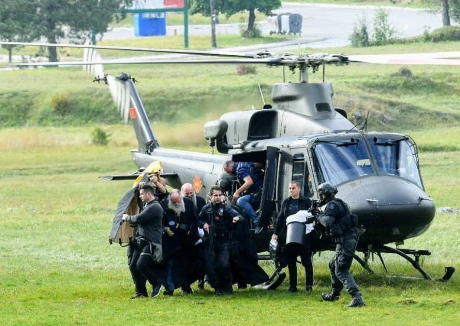 Patrijarh Porfirije i mitropolit Joanikije sleteli su na Cetinje helikopterom i na ovaj način, rešen je veliki logistički problem koji je imala i Srpska pravoslavna crkva i crnogorska policija - kako dvojicu velikodostojnika dovesti na Cetinje, gde su komite postavile barikade a da se pri tom ne desi krvoproliće.