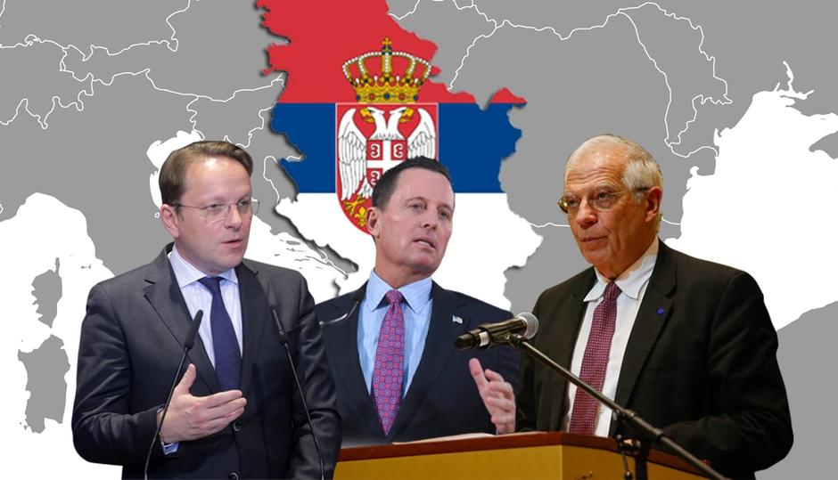 U kontekstu priče o američkim i evropskim uticajima na Balkanu spominju se tri važne ličnosti i njihove posete: Ričard Grenel, specijalni izaslanik SAD-a za Kosovo, šef diplomatije Evropske unije Đuzep Borelj i Oliver Varhelji, evropski komesar za proširenje.