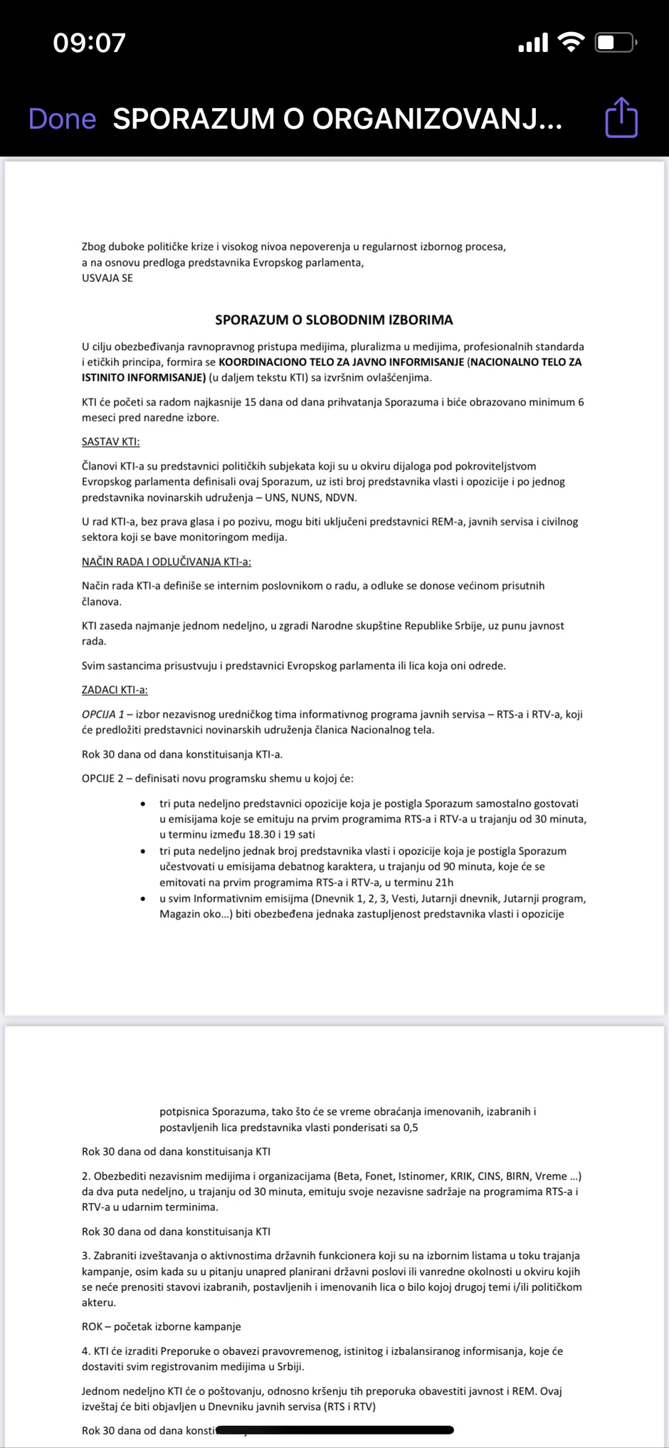 Što se tiče medija i KTI, predloženo je da u njegovom sastavu budu predstavnici stranaka i pokreta koji su i radili na sporazumum, ali i isti broj predstavnika vlasti i opozicije i po jednog predstavnika novinarskih udruženja – UNS, NUNS, NDVN.