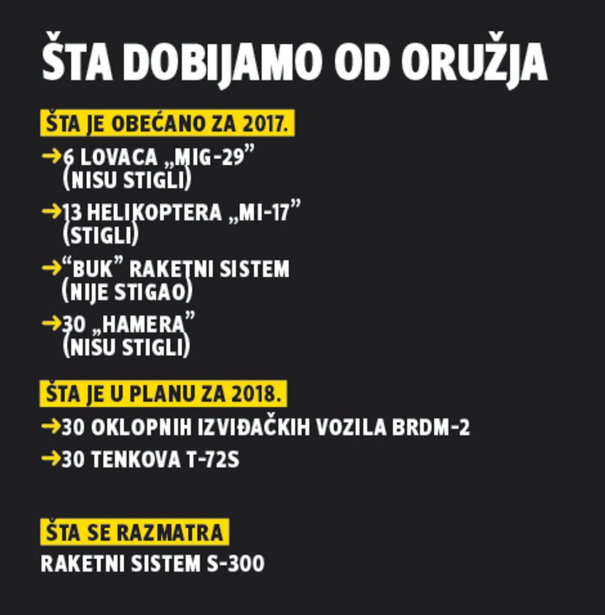 Naoružanje iz Rusije trebalo bi u Srbiju da stigne do kraja godine, a možda važnije pitanje od toga koliko će i za koji novac naša vojska biti unapređena jeste i dilema kako će na to gledati Evropska unija. Pogotovo ako se ima u vidu da je i sam predsednik Srbije u razgovoru sa izvestiocem Evropskog parlamenta za Srbiju Dejvidom Mekalisterom označio odnos sa Rusijom kao drugu najveću glavobolju na putu ulaska u EU. No, krenimo redom.