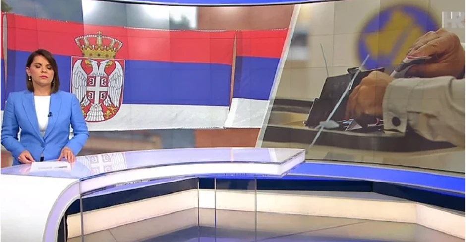U prilogu hrvatskog javnog servisa HRT o izborima na Kosovu i Metohiji u pozadini iza voditeljke videla se zastava Srbije.