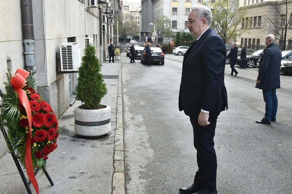On je po dolasku, u prisustvu premijerke Srbije Ane Brnabić, položio venac na spomen ploču ubijenom premijeru Srbije Zoranu Đinđiću u dvorištu zgrade Vlade u Nemanjinoj 11.
