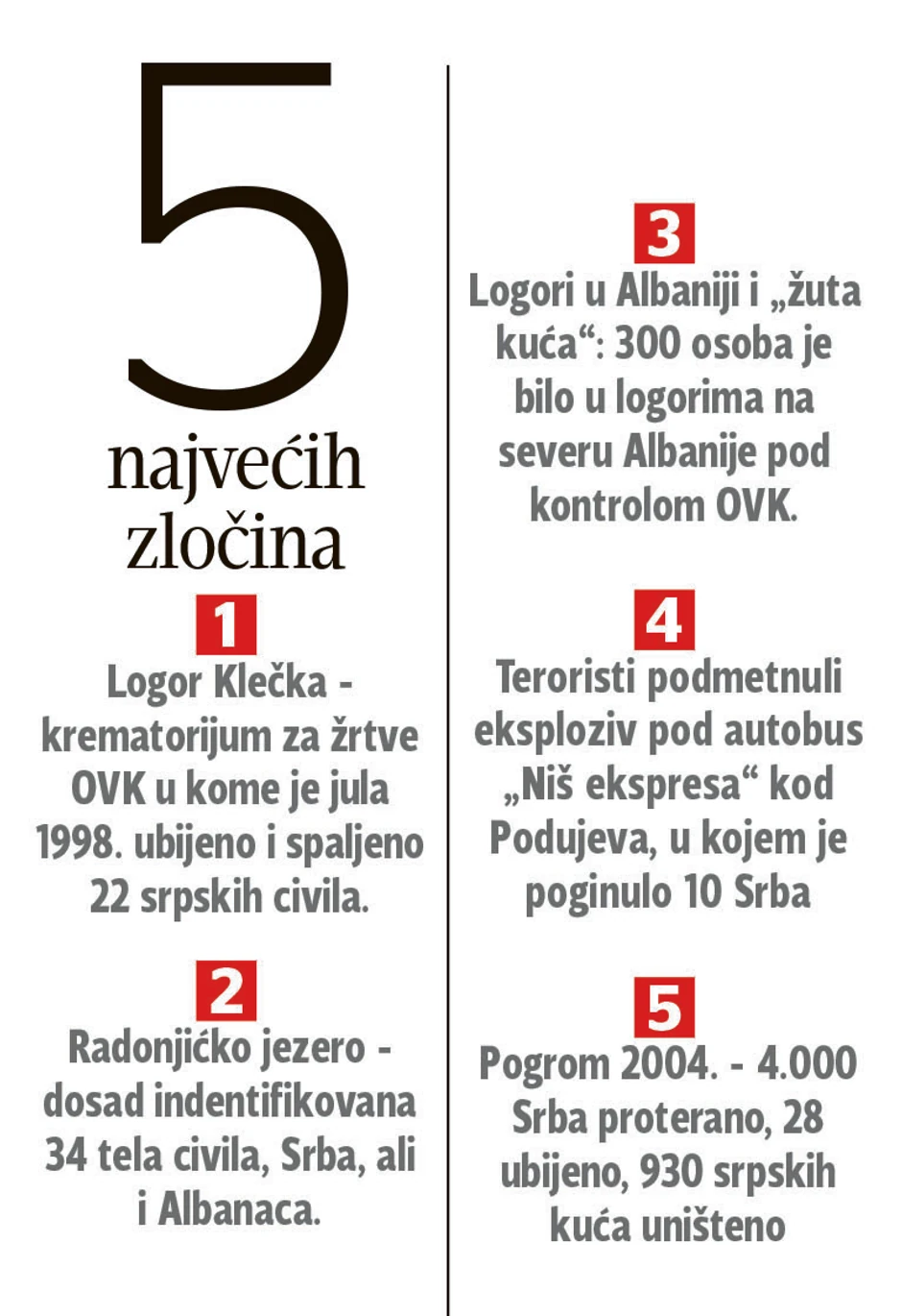 Tužilaštvo Specijalnog suda vodi istrage u vezi sa oko 500 ubistava Srba i Albanaca posle 2000. godine, uključujući i brojna nerešena ubistva političkih rivala stranaka koje su proistekle iz OVK.