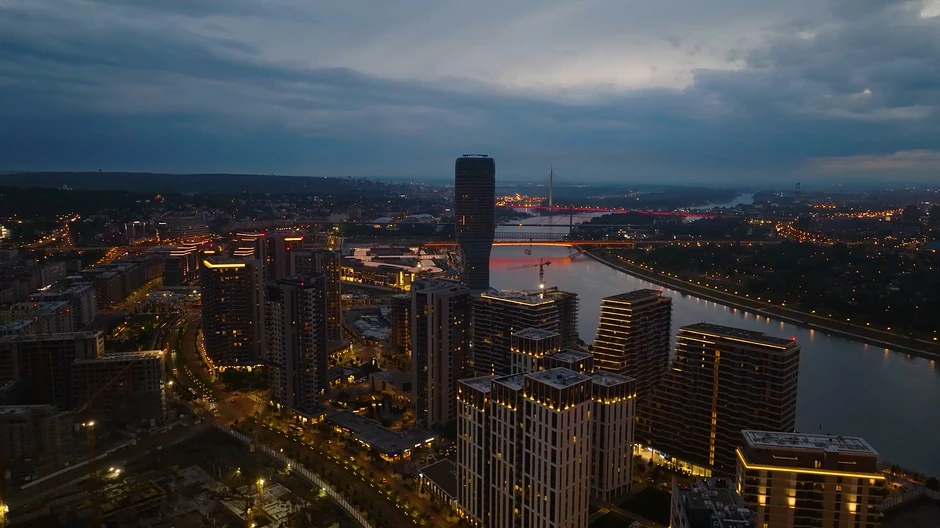 Spektakularni prizori vide se na najvišoj zgradi u Beogradu, na kojoj su se smenjivala nacionalna obeležja dve zemlje.