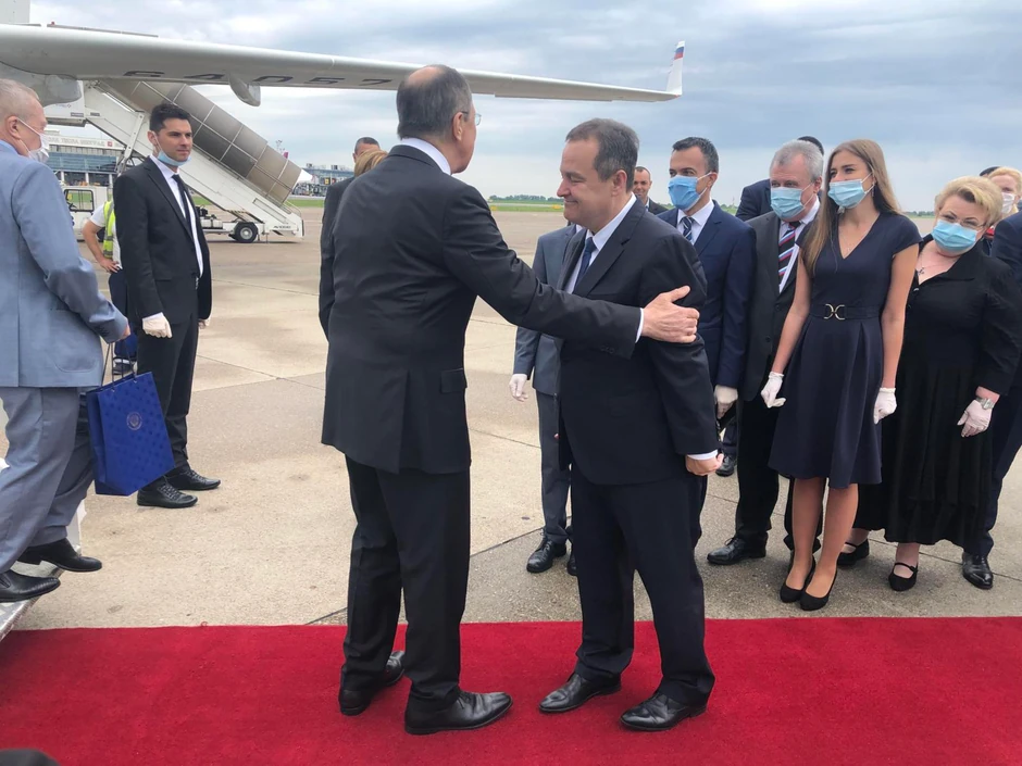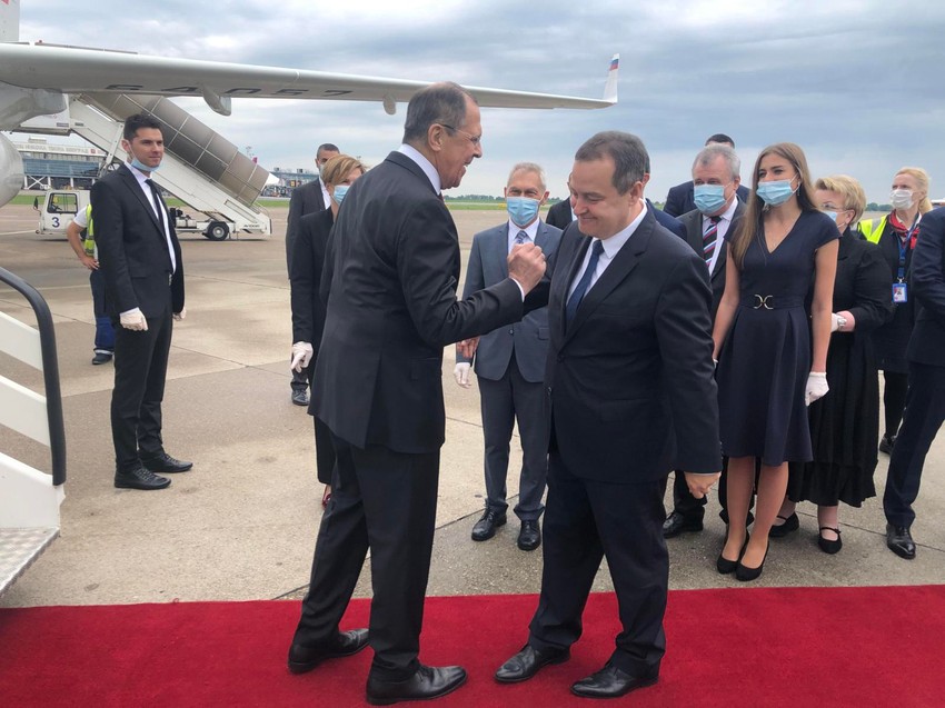 Lavrova je na aerodromu dočekao njegov srpski kolega Ivica Dačić, sa kojim se srdačno pozdravio, nakon čega je ušao u automobil.