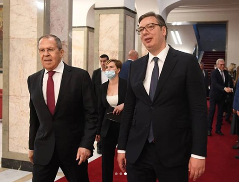 Nakon toga se kolona kola sa šefovima ruske i srpske diplomatije udaljila sa aerodroma, i uputila ka centru grada, odnosno Predsedništvu, gde se Lavrov sastao sa predsednikom Sbije Aleksandrom Vučićem.