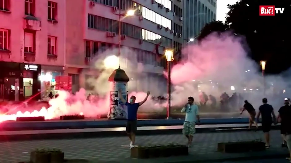 Kamere "Blica" zabeležile su haotične scene na Trgu Nikole Pašića, gde je atmosfera dovedena do usijanja, nakon što su demonstranti upalili baklje, a ka policiji poletele flaše i kamenice. Na ulicama odzvanjaju i topovski udari, dolazi do okršaja između policije i demonstranata, koji ne odustaju u svojim namerama.
