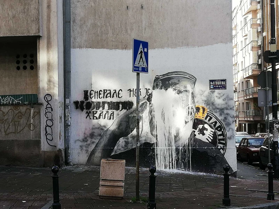 Podsetimo, mural sa likom bivšeg komandanta Vojske Republike Srpske Ratka Mladića, osuđenog u Hagu na doživotni zatvor, oslikan je letos na uglu Njegoševe i Ulice Alekse Nenadovića.