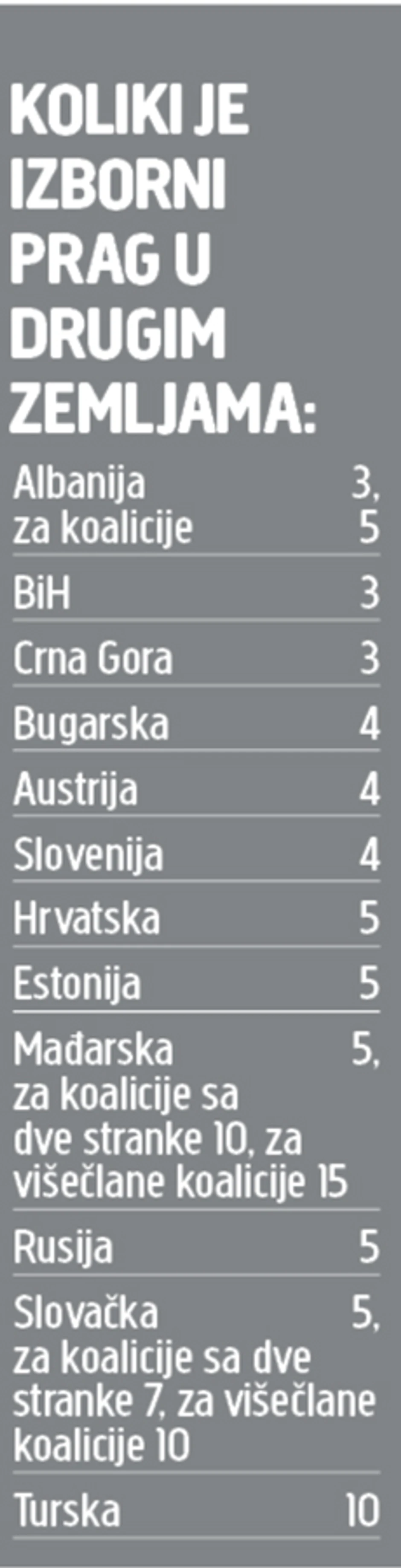 Redovni izbori - vanredna pravila. Kad god bili, 19. ili 26. aprila, za njih će, po svoj prilici, važiti nova pravila igre jer je najavljeno smanjenje cenzusa sa pet na tri odsto. Oni koji podržavaju taj predlog kažu da će tako veći broj stranaka ući u parlament, dok protivnici navode da se u tako krupne promene ne ulazi bez široke rasprave.
