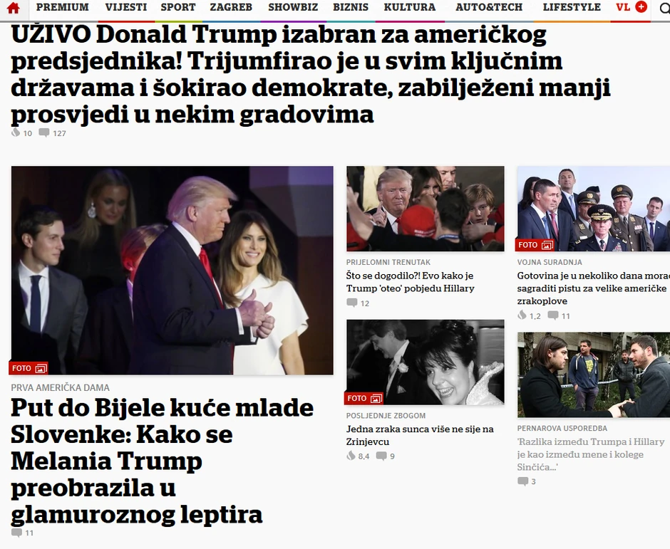 I hrvatskim medijima, osim pobede Trampa, u centru pažnje je i njegova žena Melanija, koja je poreklom sa ovih prostora, tačnije iz Slovenije.