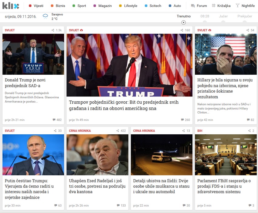 Pobeda Trampa je glavna tema medijima u BiH, Crnoj Gori i Makedoniji, koji se bez komentara pozivaju na agencijske vesti.