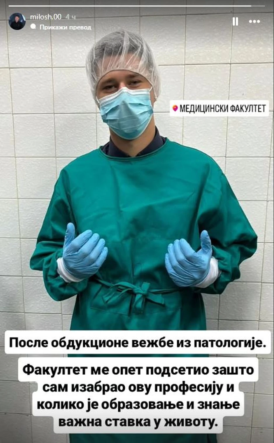 - Posle obdukcione vežbe iz patologije. Fakultet me opet podsetio zašto sam izabrao ovu profesiju i koliko je obrazovanje i znanje važna stavka u životu - naveo je Pavlović na svom Instagram profilu.