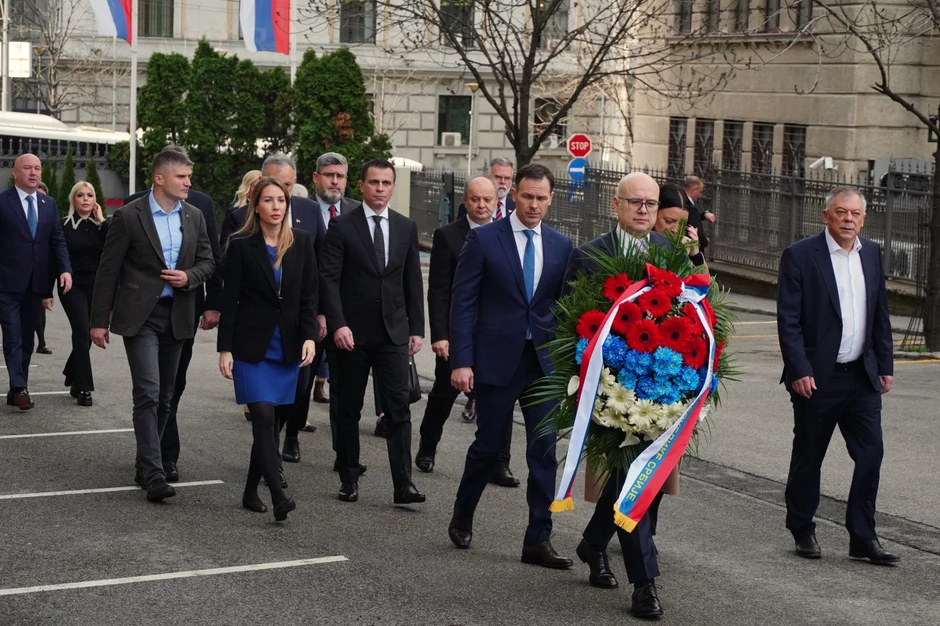 Premijer Miloš Vučević i članovi vlade položili vence na mestu atentata na Zorana Đinđića