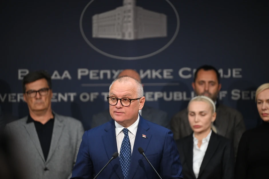 Ministar građevinarstva, saobraćaja i infrastrukture Goran Vesić na vanrednoj konferenciji za novinare obratio se se javnosti iz Vlade Srbije.