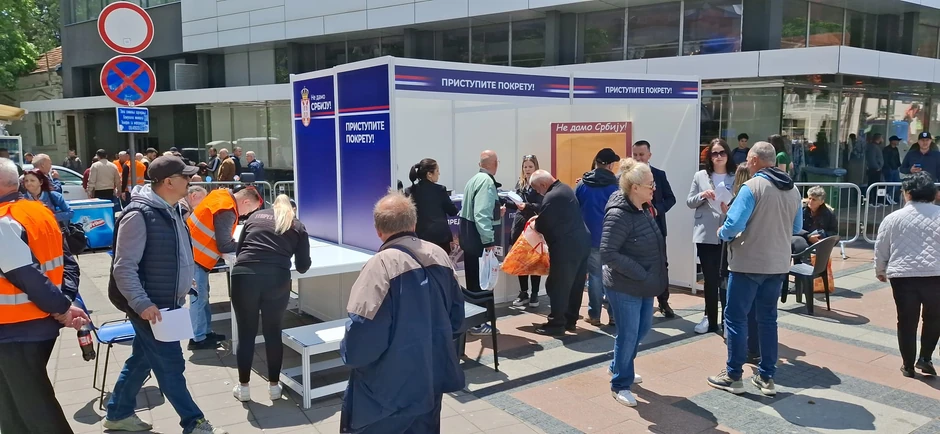 Na skupu se nalazi i štand na kome zainteresovani građani mogu da pristupe novom Pokretu za narod i državu.