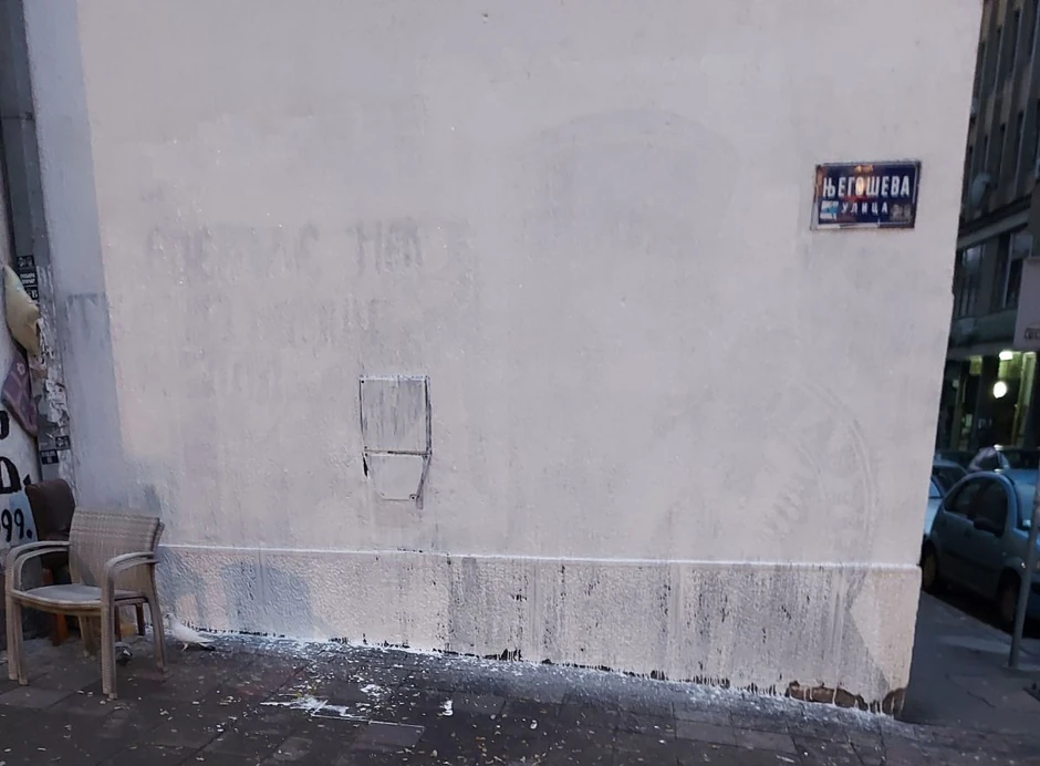 Nakon što je opština Vračar objavila je da je prekrečen mural sa likom Ratka Mladića, dvojica mladića su došla u Njegoševu ulicu i pokušavaju da očiste mural od kreča.